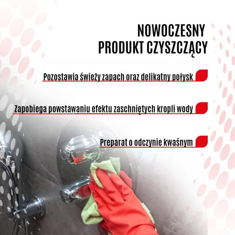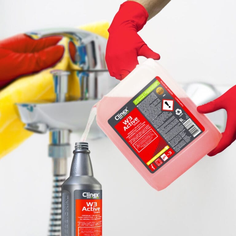 Clinex W3 Active Shield skutecznie usuwa rdzawe i kamienne nacieki, brud, osady wapienne i mydlane. Nowoczesna formuła preparatu została wzbogacona o polimery, które opóźniają efekt ponownego osadzania się brudu oraz ułatwiają proces kolejnego mycia. Produkt posiada Świadectwo Jakości Zdrowotnej wydane przez PZH. To profesjonalny środek do usuwania kamienia z kabiny prysznicowej, który świetnie poradzi sobie z usuwaniem osadów mydlanych.